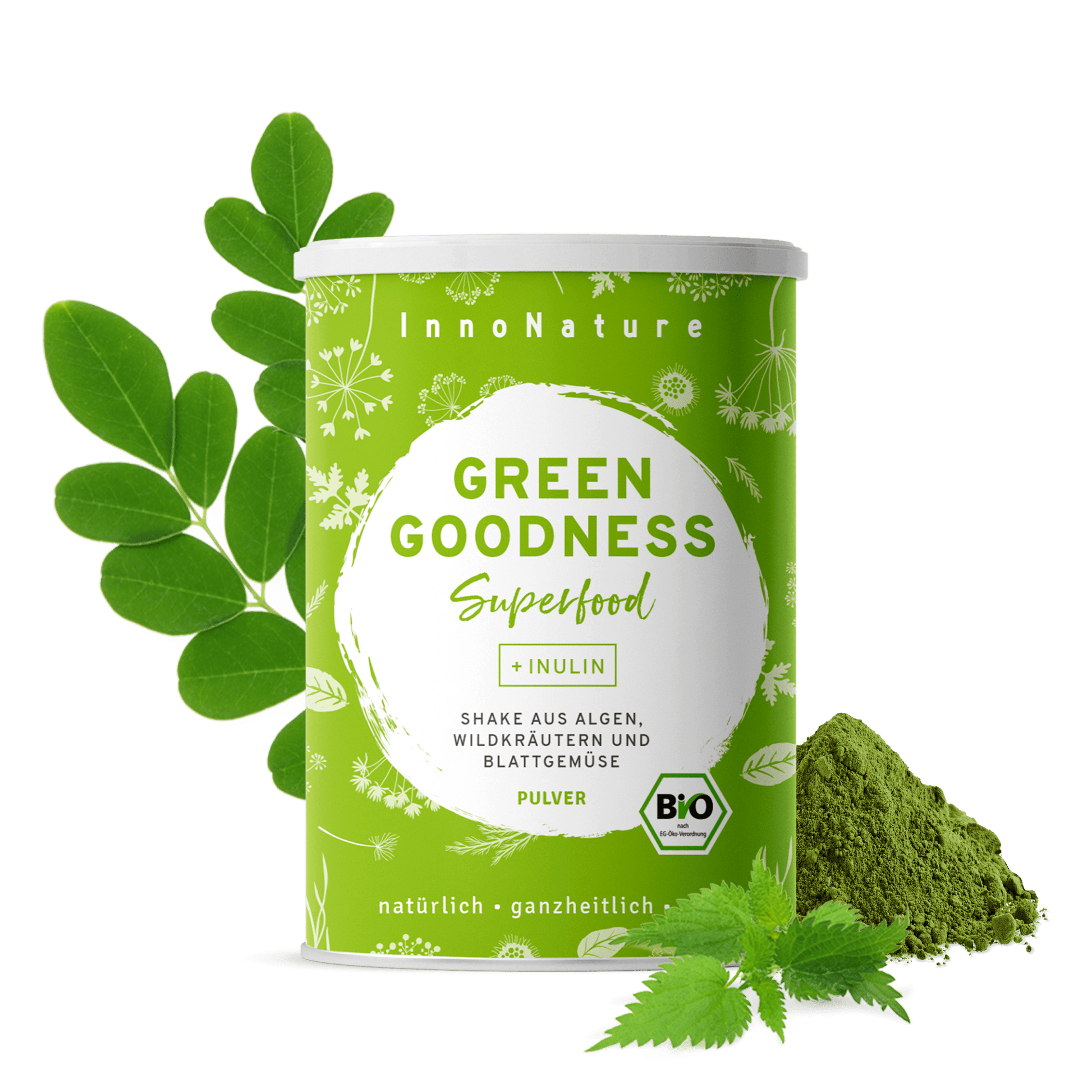 BIO Green Goodness Shake mit Superfoods aus Algen, Wildkräutern und Blattgemüse