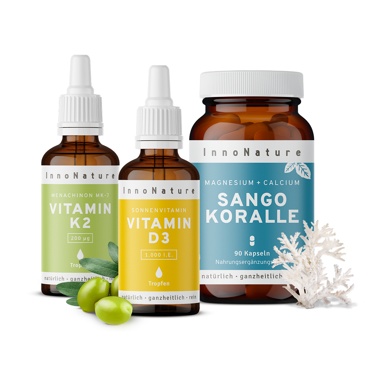 Dieses Paket beinhaltet eine hochwirksame Kombination aus Vitamin D3, Vitamin K2 und Sango Koralle. Besonders in Deutschland, wo die Winter länger und die Sommer immer unzuverlässiger werden, bilden diese drei Produkte ein perfektes Team um das Sonnenhormon zu tanken.
