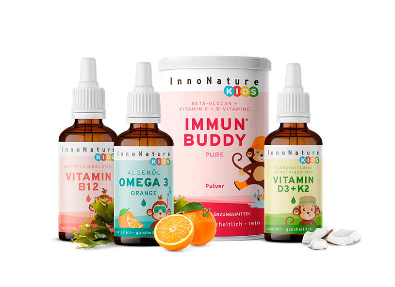 Die Dosierung unserer Kids Produkte ist optimal auf die Bedürfnisse von Kindern abgestimmt und kann individuell, auch mehrmals über den Tag verteilt, verzehrt werden. Zudem sind unsere Kids Produkte bewusst in Tropfen- oder Pulverform, um einen kinderleichten Verzehr zu ermöglichen. So können unsere Produkte auch gut in Saft, Müsli oder Porridge gemischt werden.