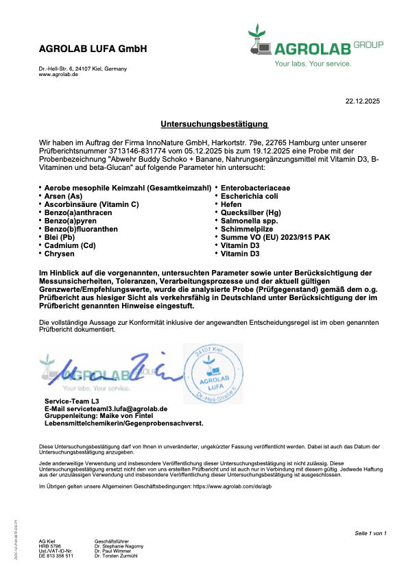 Darüber hinaus ermöglichen unsere vielfältigen Geschmacksvariationen des Abwehr* Buddy Pulvers einen angenehmen Verzehr für jedes Kind!