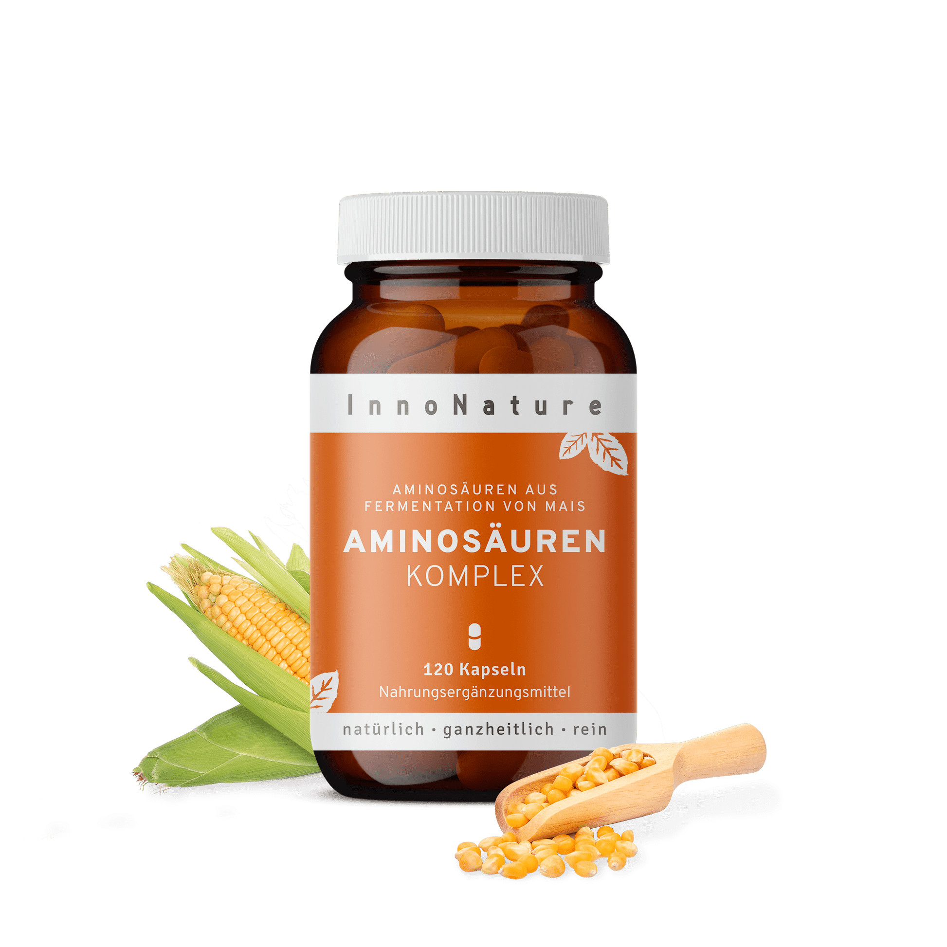 Essenzielle Aminosäuren können vom Körper nicht in ausreichendem Maße selbst produziert werden und müssen daher über die Nahrung und/oder entsprechende Nahrungsergänzungsmittel aufgenommen werden. Einige (auch pflanzliche) Lebensmittel enthalten Aminosäuren, dennoch kann es aufgrund von einem erhöhten Bedarf oder anderen individuellen Umständen zu einem Mangel kommen. Die InnoNature Aminosäuren Komplex Kapseln können Deinen Körper an dieser Stelle gut unterstützen.