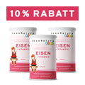Das Eisen Kids Pulver kann wunderbar mit dem Abwehr* Buddy Pulver den Vitamin D3+K2 Kids Tropfen, Vitamin B12 Tropfen und unseren Omega 3 Tropfen für Kinder kombiniert werden. Zusammen bilden sie ein unschlagbares Team für das ganzheitliche Wohlbefinden Deines Kindes.