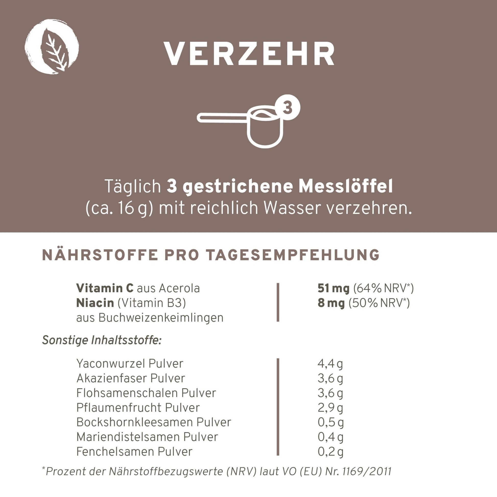 Die empfohlene Verzehrmenge von 3 Messlöffeln (16 g) enthält: