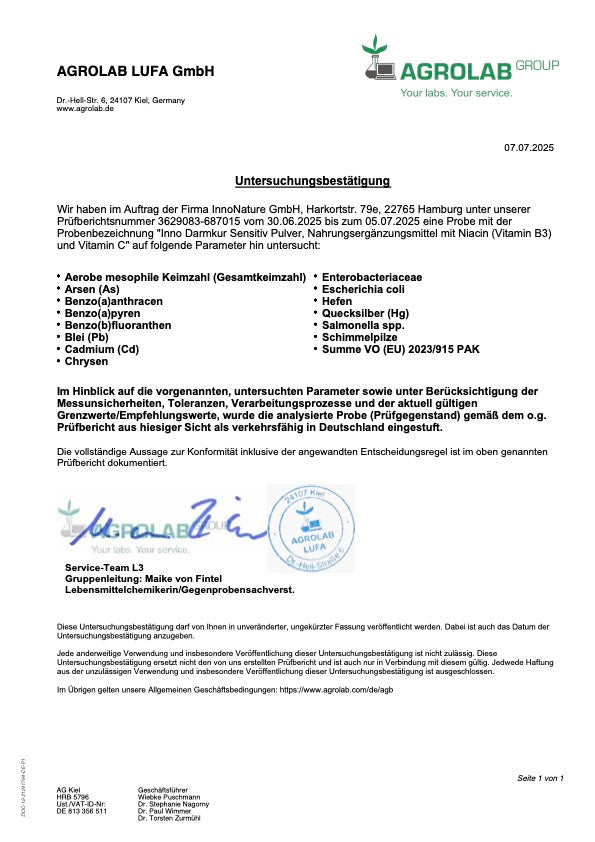 Hergestellt für InnoNature GmbH, Harkortstr. 79e, 22765 Hamburg