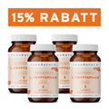 Die Glasdose beinhaltet einen 2-4 Monatsvorrat von 120 Kapseln (Nettofüllmenge: 75,6 g).