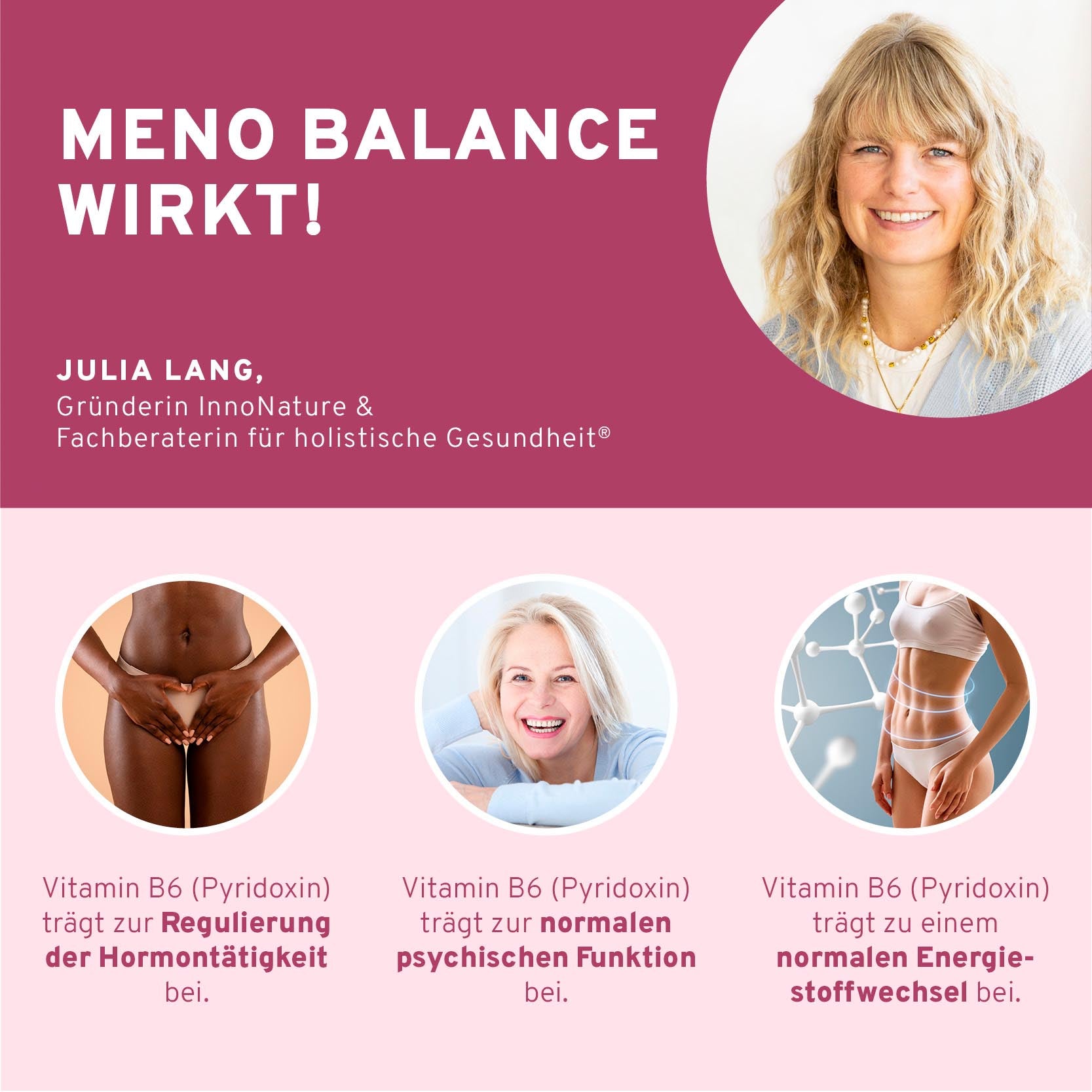 Meno Balance - ein Komplex mit Vitamin B6 aus Buchweizenkeimlingen und wertvollen sekundären Pflanzenstoffen aus Yamswurzel, Passionsblume, Mariendistel und Mönchspfeffer