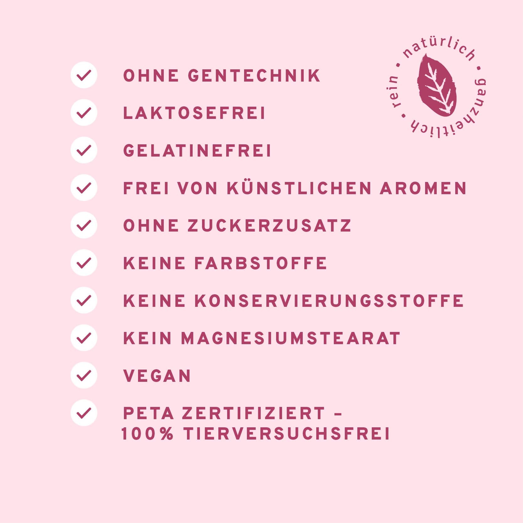 💛 NATÜRLICH, GANZHEITLICH, REIN: Frei von überflüssigen Zusatzstoffen und Zutaten. Frei von Gluten, laktosefrei, ohne Zuckerzusätze, keine Farbstoffe, ohne Zusatz von Aromen, frei von Füllstoffen, keine Konservierungsstoffe, kein Magnesiumstearat und ohne Gentechnik.