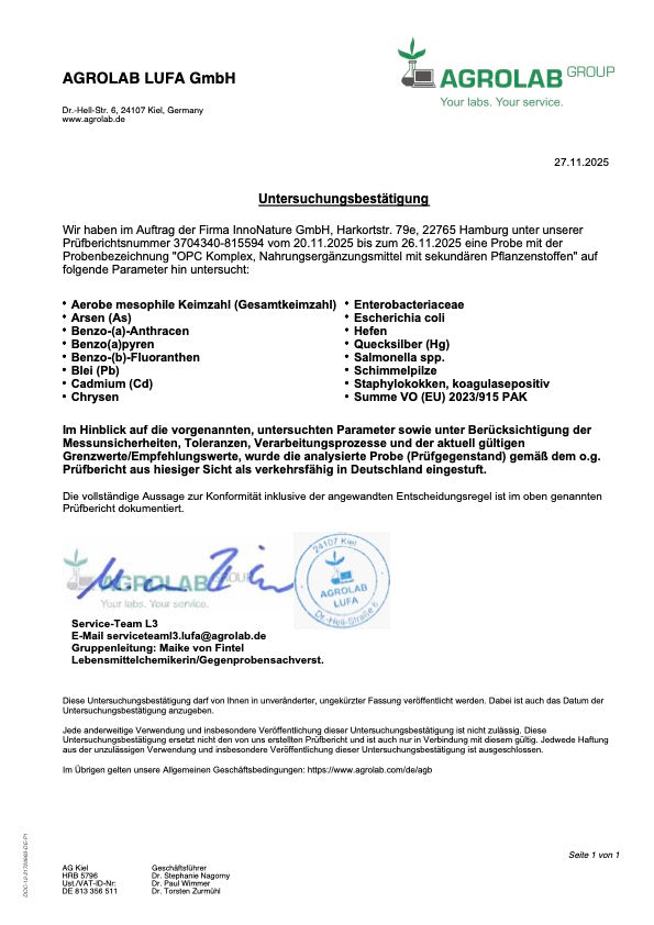 Der OPC Komplex von InnoNature hat eine ganzheitliche Wirkung für das Wohlbefinden und beinhaltet eine optimale Versorgung mit Antioxidantien für Deinen Körper.