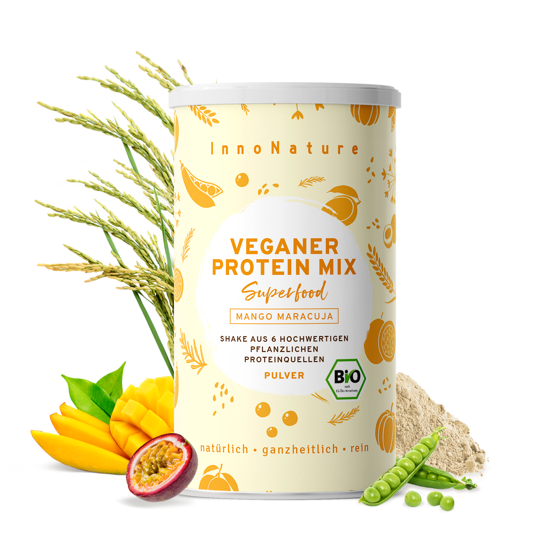 Protein ist einer der wichtigsten Energielieferanten und gleichzeitig ist es Grundbaustein für Muskeln, Organe und Blut. Und damit ist Protein nicht nur wichtig für Sportler*innen! Wir alle sind auf eine ausreichende Zufuhr angewiesen. Wer dem Körper eine besondere Freude bereiten möchte, achtet bei den Proteinquellen auf Abwechslung. Unser rein pflanzlicher Protein Mix Mango Maracuja ist hier die optimale Lösung!