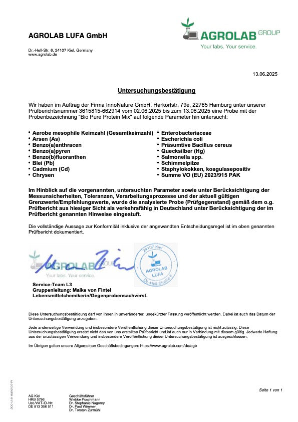 Hergestellt für InnoNature GmbH, Harkortstr. 79e, 22765 Hamburg.