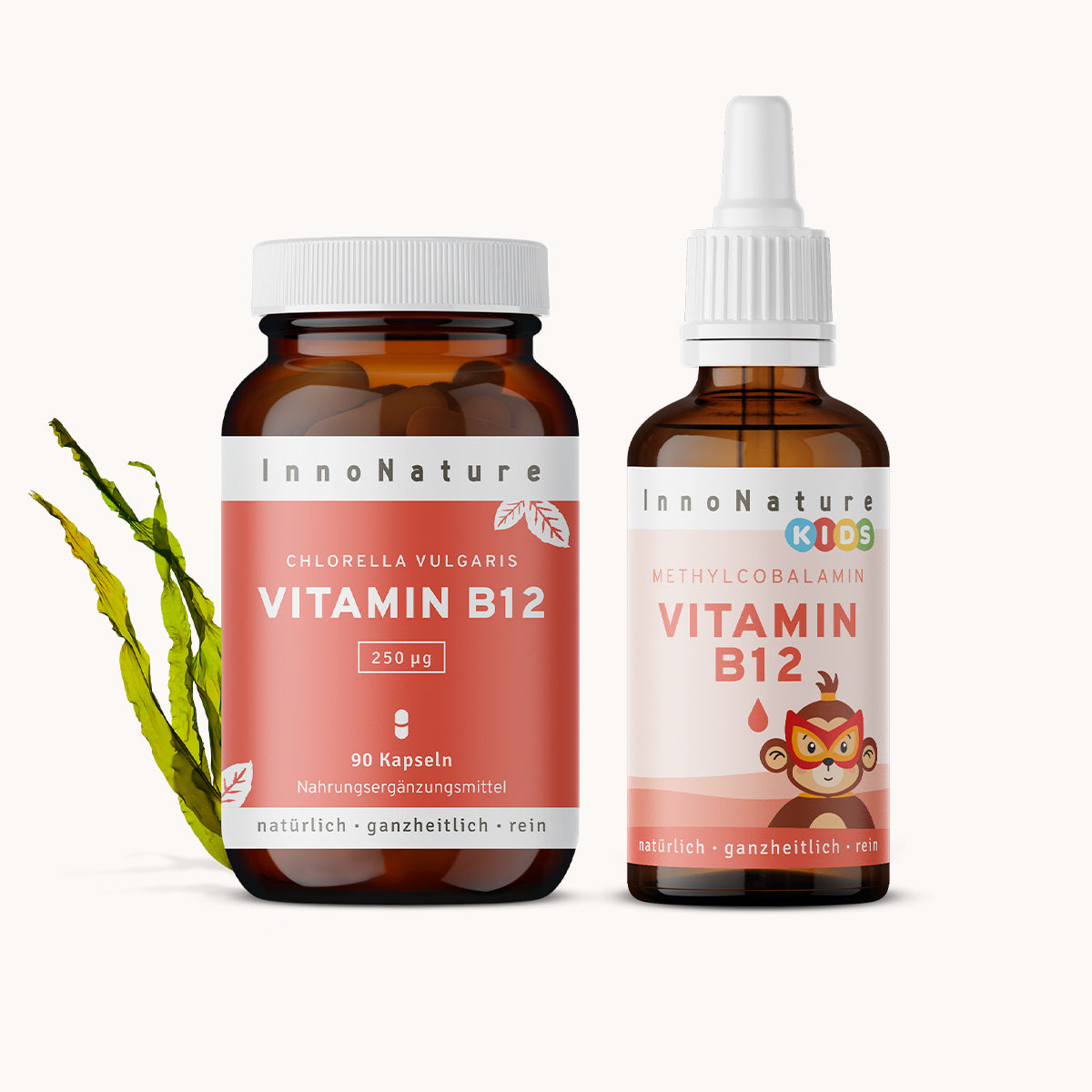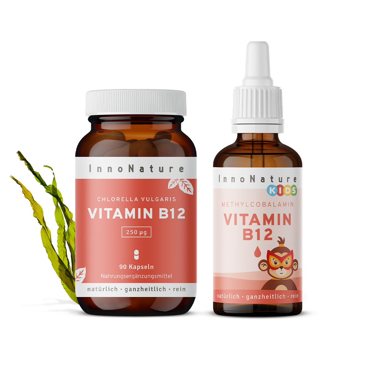 Die Inhaltsstoffe sowie Gebrauchsanweisung der einzelnen Produkte findest Du auf der jeweiligen Produktseite in unserem Shop und auf den jeweiligen Etiketten: Vitamin B12 Kapseln für Erwachsene und Vitamin B12 Tropfen für Kids.
