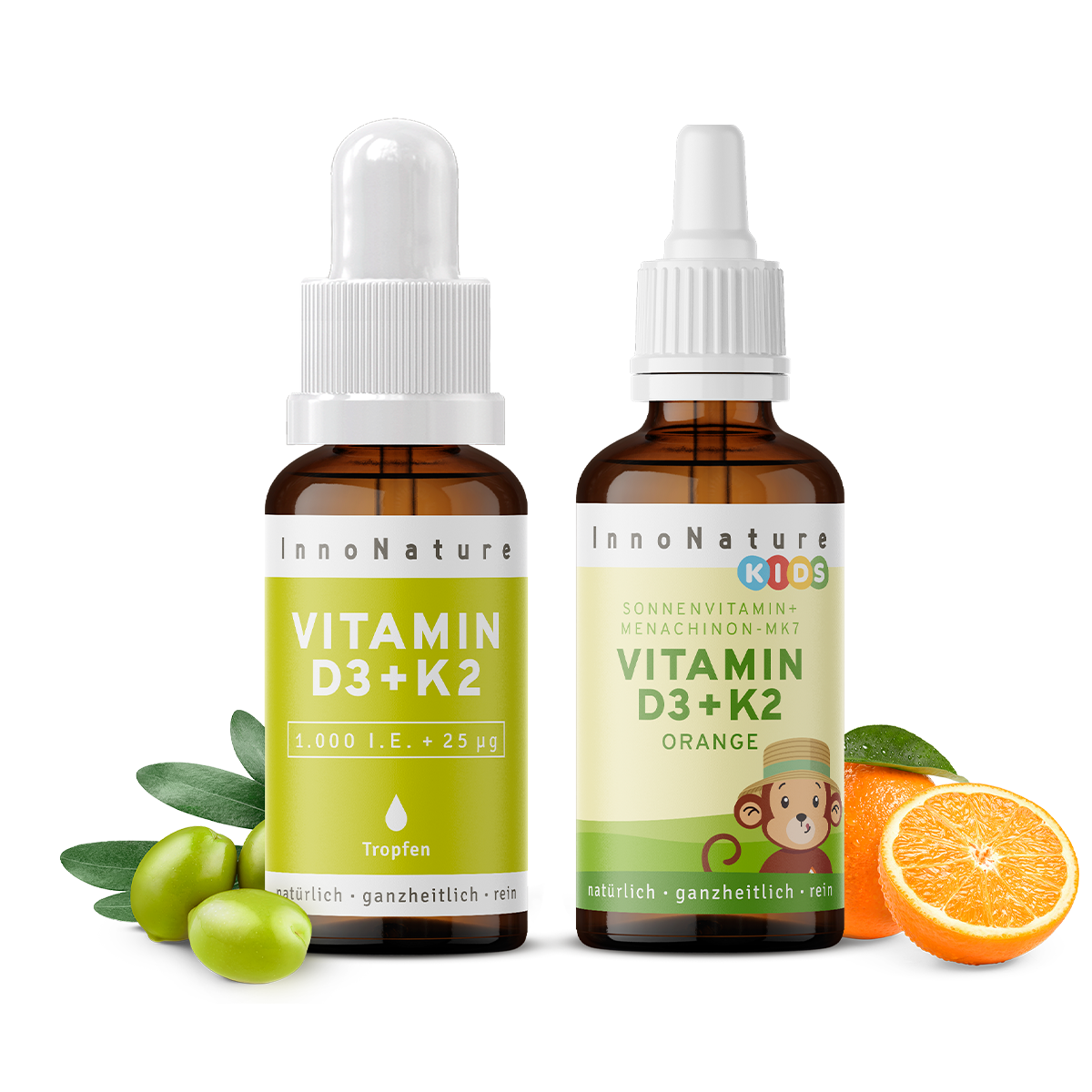 Die Inhaltsstoffe sowie Gebrauchsanweisung der einzelnen Produkte findest Du auf der jeweiligen Produktseite in unserem Shop und auf den jeweiligen Etiketten: Vitamin D3 + K2 Tropfen und Vitamin D3 + K2 Kids Tropfen Orange.